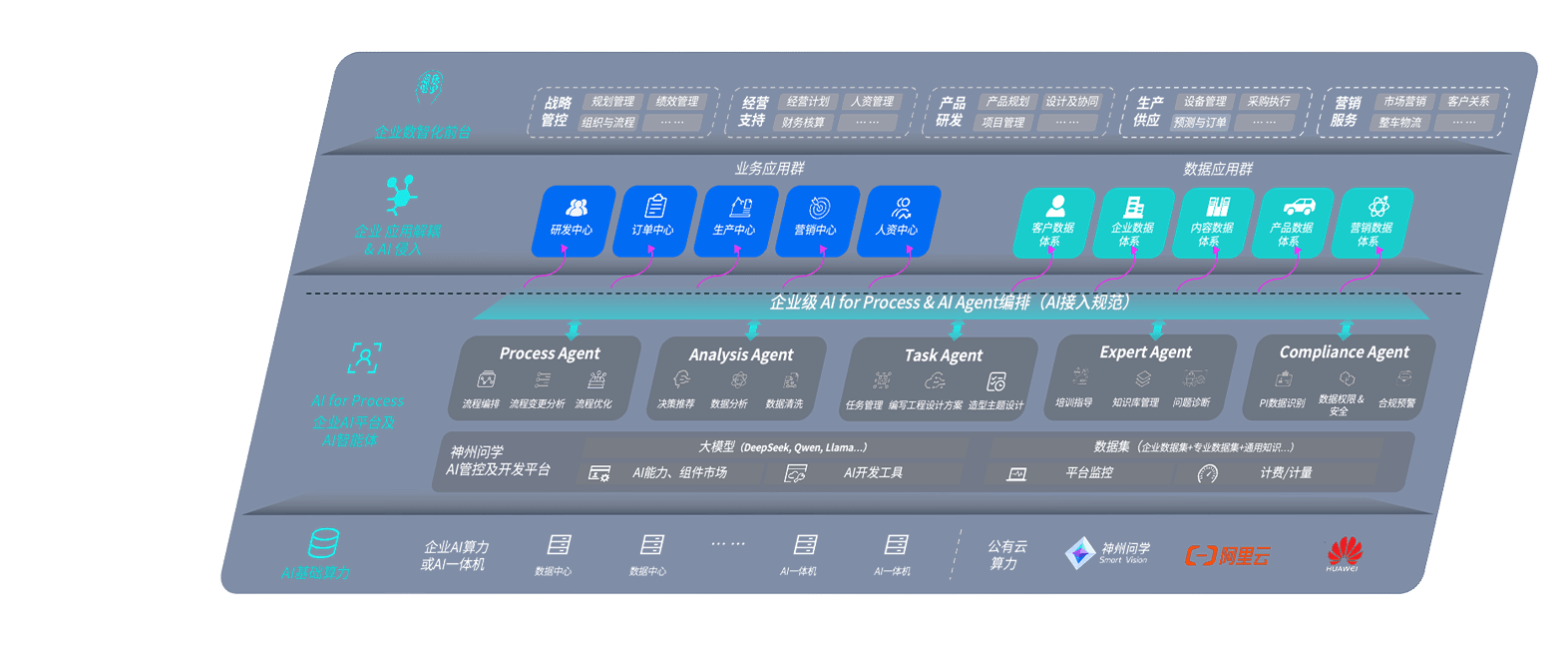 聚彩堂问学智车解决方案是一套基于AI技术的汽车行业智能化系统,,,覆盖从底层算力到顶层AI应用的全栈方案。。方案由算力层、、、模型层和应用层组成:算力层,,方案支持多种一体机配置,,,,具备云端灵活部署、、、多云适配以及动态优化计算资源的能力;模型层,,,,聚彩堂问学平台版提供了企业级AI应用一站式构建与管理平台,,,,支持基于后训练强化技术的汽车企业专属模型的训练、、、、评测和运营;应用层,,,聚彩堂问学DeepSeek版提供包括超级员工、、智能招采、、智能营销、、、、智能客服、、、、AI for BI等一系列解决方案,,,,可助力汽车行业实现数字化转型,,让管理更智能、、响应更敏捷。。。。