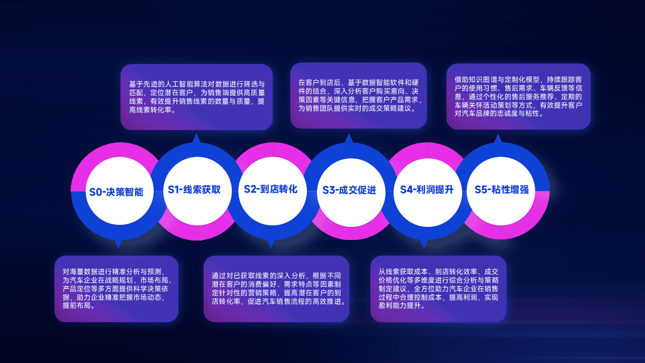 通过拓宽潜在客户来源、、、、优化线索分配并提高到店转化率,,,以增强销售效率。。同时,,,利用线索数据不断优化分析模型,,,有效提升转化率,,扩大营销影响力。。。